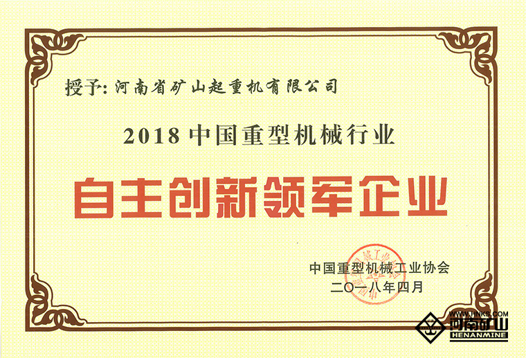 作為本次大會(huì)的重要內(nèi)容,大會(huì)隆重表彰了2018中國重型機(jī)械行業(yè)“自主創(chuàng)新領(lǐng)軍企業(yè)”及“自主創(chuàng)新先進(jìn)企業(yè)”。河南礦山榮獲“自主創(chuàng)新領(lǐng)軍企業(yè)”榮譽(yù)稱號(hào)。